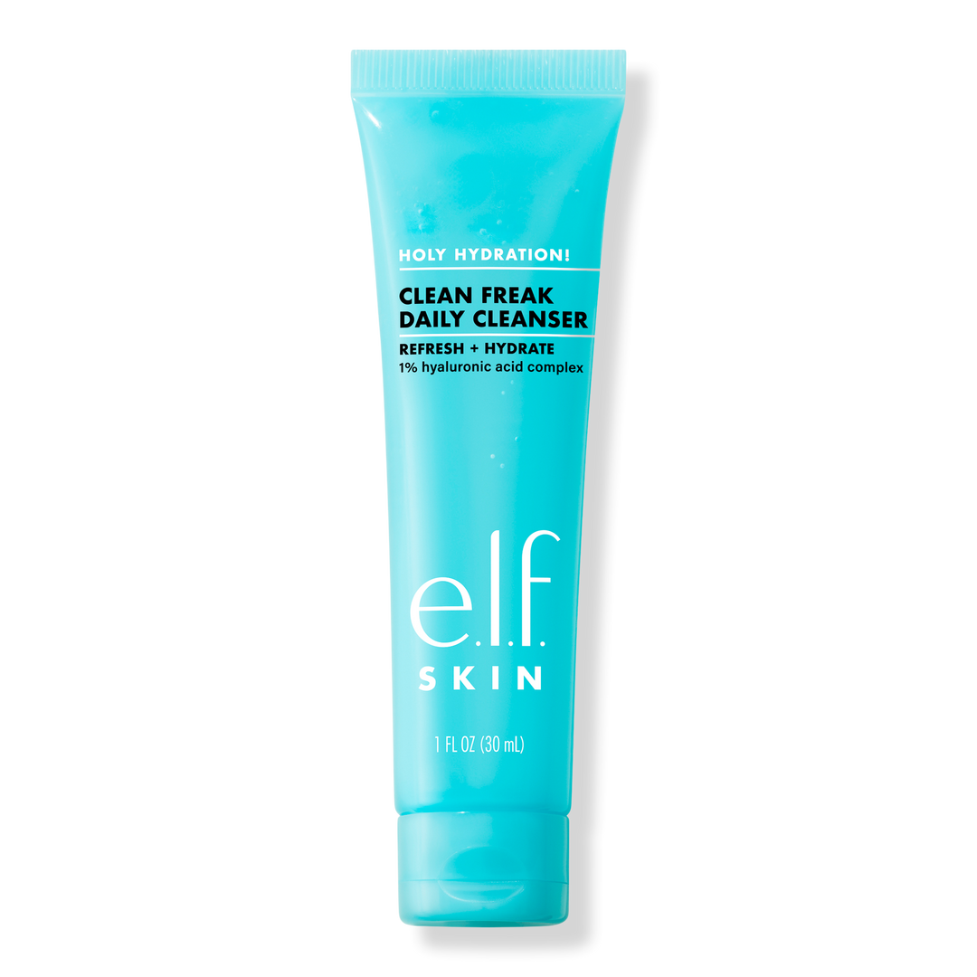 e.l.f. SKIN's Holy Hydration! Clean Freak Daily Cleanser is a lightly foaming, gentle gel face wash that will help you say bye to dry with a 1% Hyaluronic acid complex that hydrates, even after rinsing, for skin that feels soft, comfy and clean as e.l.f.