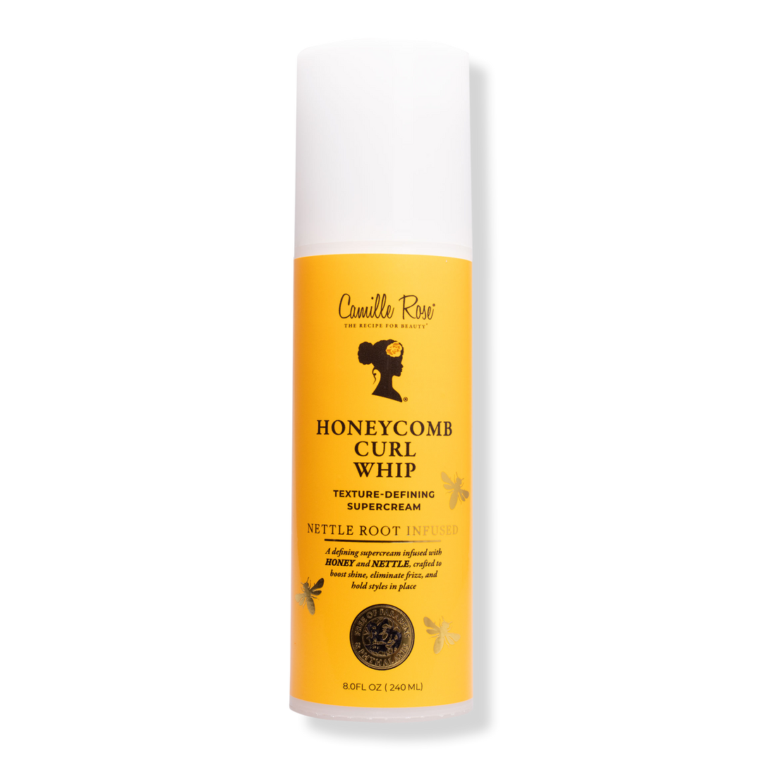 Camille Rose's Honeycomb Curl Whip Supercream is a defining cream infused with honey and nettle, crafted to boost shine, eliminate frizz, and hold styles in place.