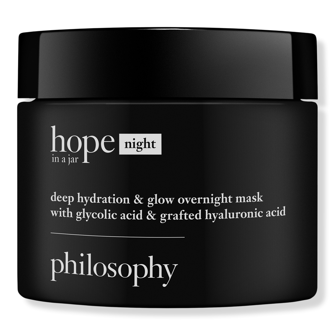 The Philosophy Hope In A Jar Deep Hydration & Glow Overnight Mask absorbs easily to give healthy skin hydration and a silky smooth and glowy finish for a refreshed look by morning.