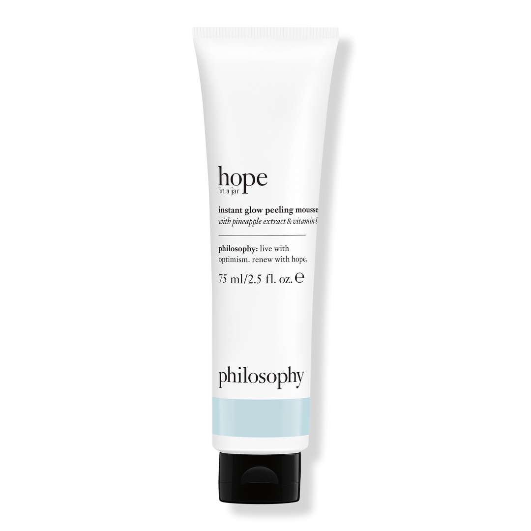 One minute to glow! Hope In A Jar Instant Glow Peeling Mousse from Philosophy rolls away dry, flaky skin for an instantly smooth, polished complexion with a radiant finish and a clean & vegan formula.