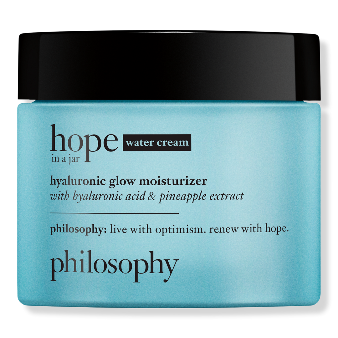 Gotta glow? Philosophy's Hope In A Jar Water Cream Hyaluronic Glow Moisturizer is a lightweight, fast-absorbing texture of water cream, containing Norwegian glacial water, enhanced hyaluronic acid and pineapple extract,