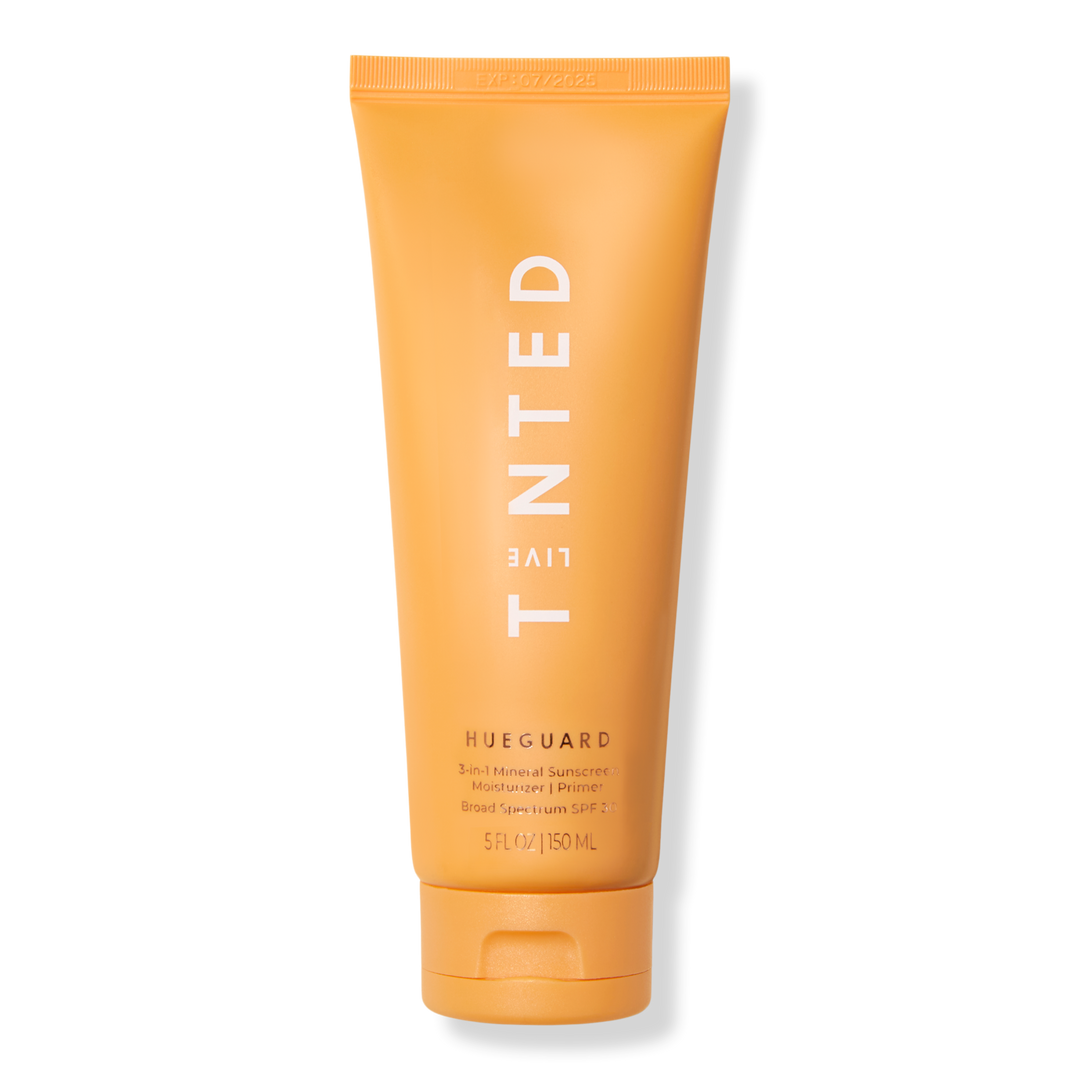 A mineral sunscreen that hydrates and preps skin for makeup while protecting it from harmful UVA/UVB rays and blue light, Live Tinted's Hueguard 3-in-1 Mineral Sunscreen, Moisturizer, Primer SPF 30 multitasks.