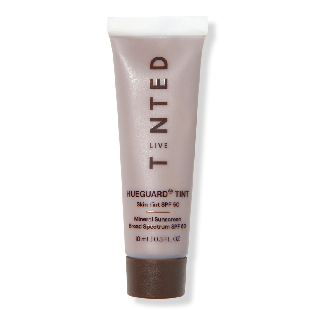 A lightweight, flexible coverage skin tint with No White Cast mineral SPF 50 that protects skin with all-day hydration and a radiant finish, Live Tinted's Hueguard Skin Tint SPF 50 Mineral Sunscreen Broad Spectrum has skincare actives to hydrate, protect, and smooth skin in one step.