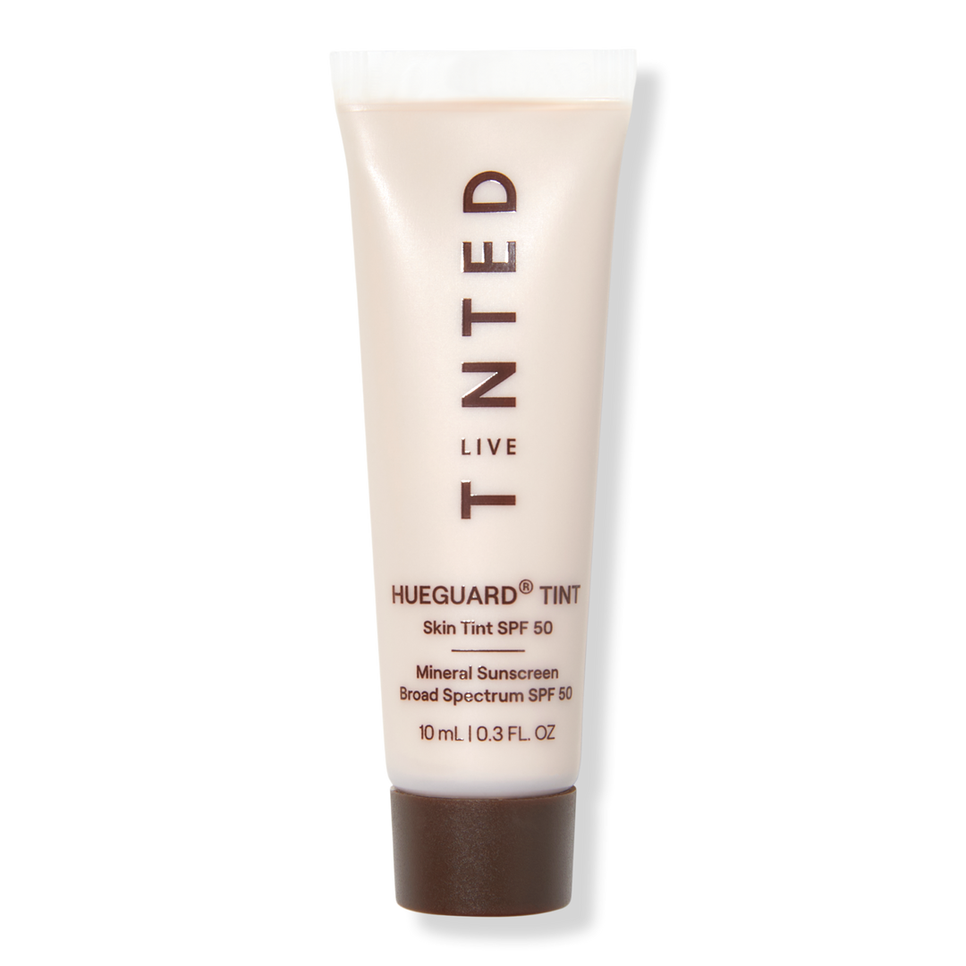 A lightweight, flexible coverage skin tint with No White Cast mineral SPF 50 that protects skin with all-day hydration and a radiant finish, Live Tinted's Hueguard Skin Tint SPF 50 Mineral Sunscreen Broad Spectrum has skincare actives to hydrate, protect, and smooth skin in one step.
