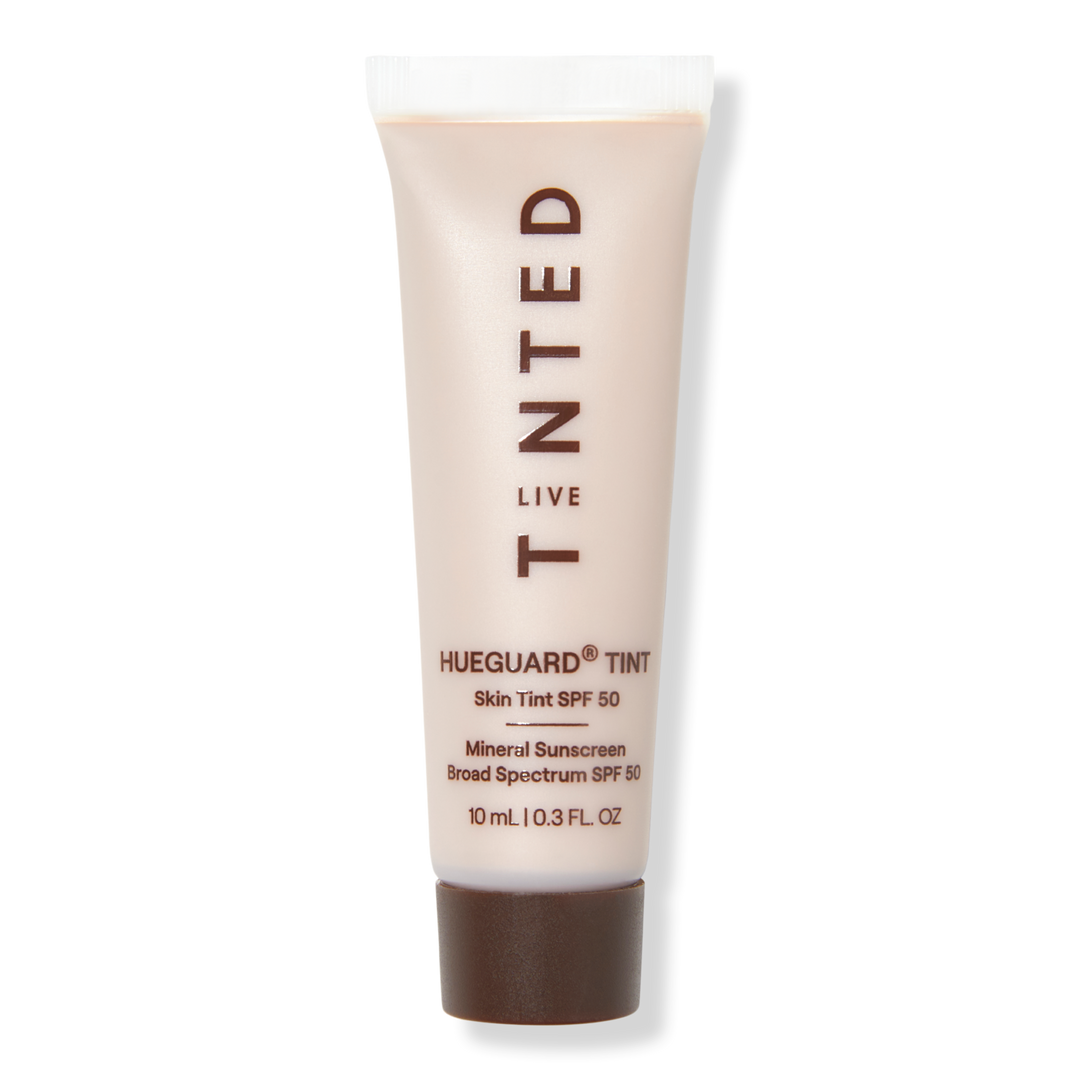 A lightweight, flexible coverage skin tint with No White Cast mineral SPF 50 that protects skin with all-day hydration and a radiant finish, Live Tinted's Hueguard Skin Tint SPF 50 Mineral Sunscreen Broad Spectrum has skincare actives to hydrate, protect, and smooth skin in one step.
