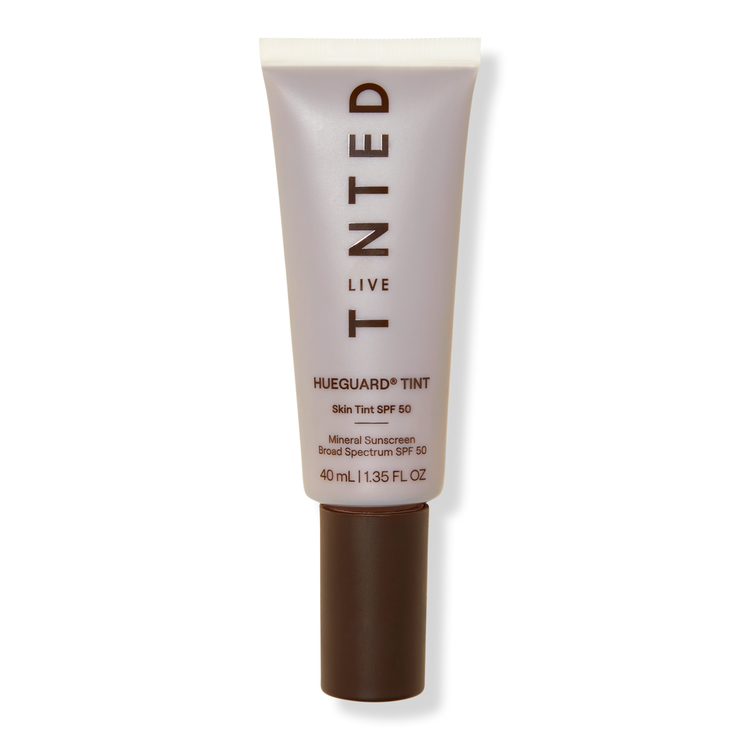 A weightless, light-medium buildable coverage skin tint with no-white-cast mineral SPF 50 that protects skin with all-day hydration and a radiant finish, Live Tinted's Hueguard Skin Tint SPF 50 Mineral Sunscreen Broad Spectrum has skincare actives to hydrate, protect, and smooth skin in one step.