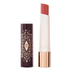 Charlotte Tilbury's Hyaluronic Happikiss Lipstick Balm with a hyaluronic-acid-infused formula that provides the hydrating power of a balm with the color payoff of a lipstick for a pigmented, dewy lip look.