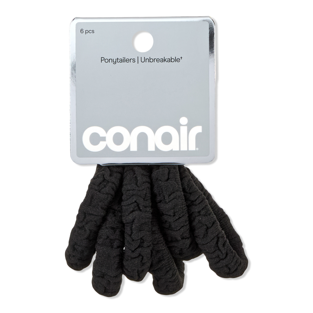 Conair Hybrid Unbreakable Ponytailers secure hair with an extra-gentle touch and firm hold. Made to last, these bands are a timeless styling essential!