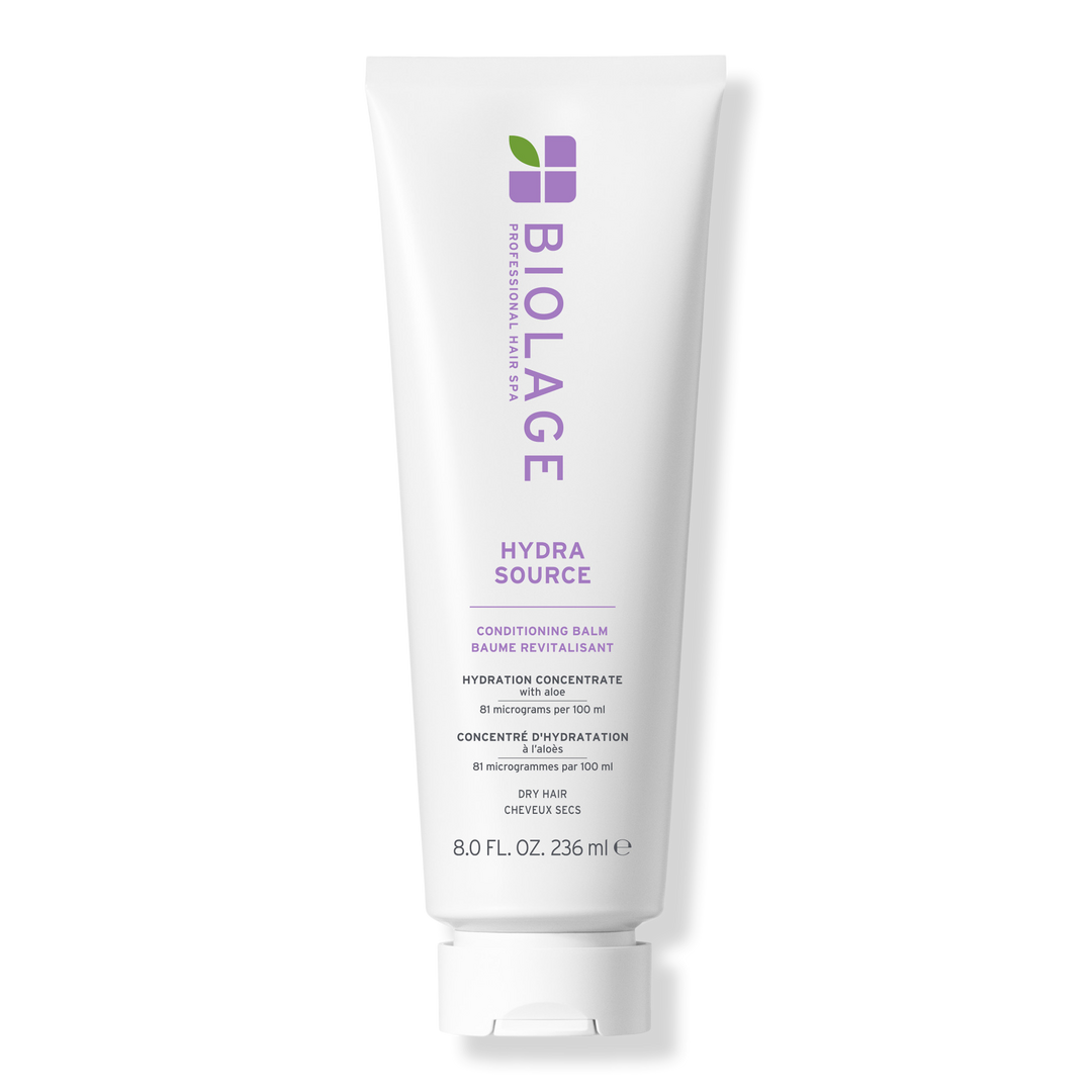 Experience weightless hydration with Biolage Hydra Source Conditioning Balm for dry hair! This silicone-free jelly-like balm, infused with micro-filtered aloe vera, conditions and detangles hair, adding softness and a silky-smooth touch.