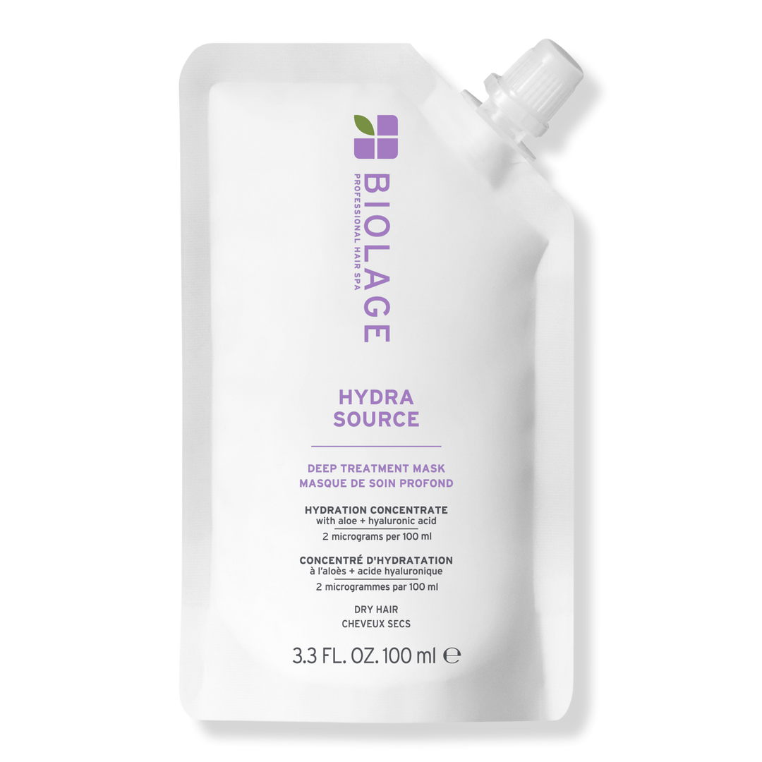 Experience intense hydration with Biolage Hydra Source Deep Treatment Mask. Infused and micro-dosed with aloe vera and fermented hyaluronic acid to restore moisture and smoothness to dry, dehydrated hair. Hair feels softer, healthier, and more manageable after one use.