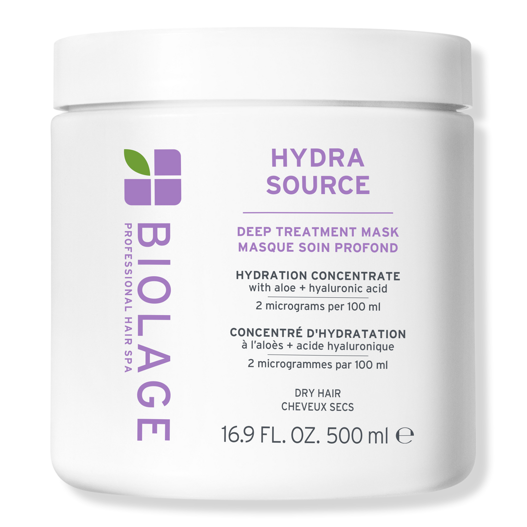 Experience intense hydration with Biolage Hydra Source Deep Treatment Mask. Infused and micro-dosed with aloe vera and fermented hyaluronic acid to restore moisture and smoothness to dry, dehydrated hair. Hair feels softer, healthier, and more manageable after one use.