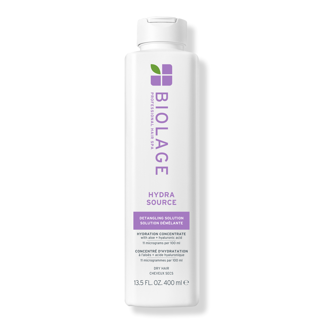 Experience instant detangling and weightless hydration with Biolage Hydra Source Detangling Solution. Infused with micro-filtered aloe vera and fermented hyaluronic acid, it conditions, controls static, reduces frizz and optimizes moisture balance for dry, tangle-prone hair.
