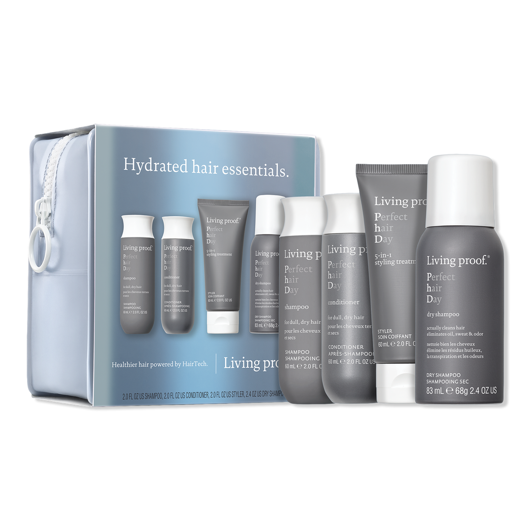 Hydrated Hair Essentials by Living Proof is a silicone-free kit that keeps your hair hydrated, shiny, and stronger, transforming its condition.