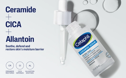 Cetaphil Hydrating Ceramide Serum with CICA & Allantoin will effectively restore and repair your skin's moisture barrier. This gentle formula is clinically proven to lock in moisture for 48 hour hydration.