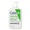 CeraVe Hydrating Cream-to-Foam Cleanser with hyaluronic acid for balanced to dry skin removes oil and makeup while reinforcing the skin barrier with ceramides.
