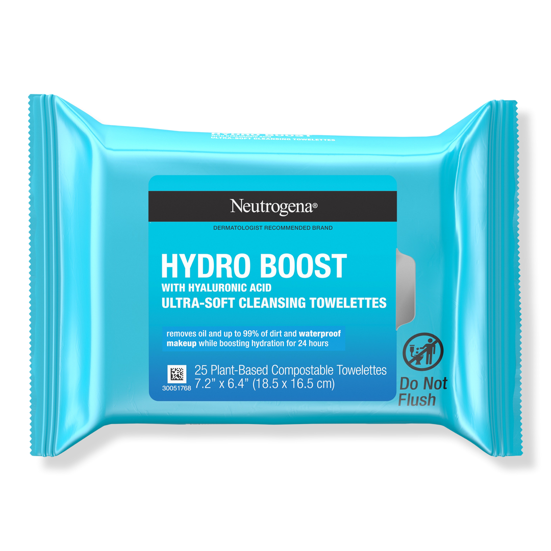 - Neutrogena Hydro Boost Facial Cleansing Wipes with hydrating hyaluronic acid, cleanse & moisturize
