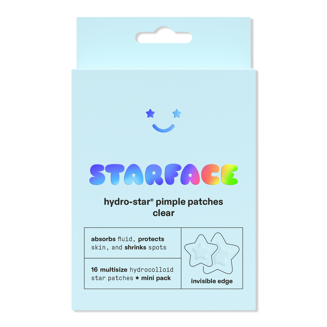 Starface Hydro-Star Clear Pimple Patches are your fav 100% hydrocolloid stars with a new invisible finish. Made in two sizes for big and little spots, these patches absorb fluid while blending seamlessly into skin.