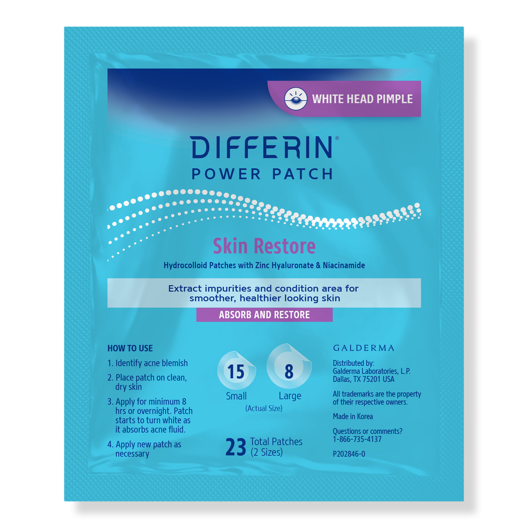 Differin Hydrocolloid power pimple patches designed to target white head or gunk-filled pimple emergencies. These patches absorb and restore the skin by extracting impurities and conditioning the area for smoother, healthier looking skin.