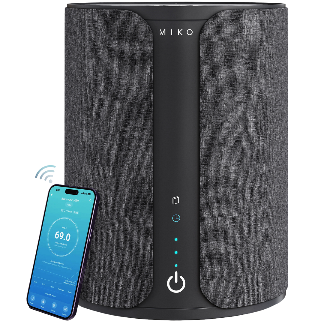 The Miko Ibuki 2.0 purifies spaces up to 1500 sq. ft., removing dust, smoke, odors, and airborne particles. Its 3-stage system—fabric pre-filter, H13 True HEPA filter, and ionizer—delivers cleaner, fresher air with whisper-quiet operation day or night.