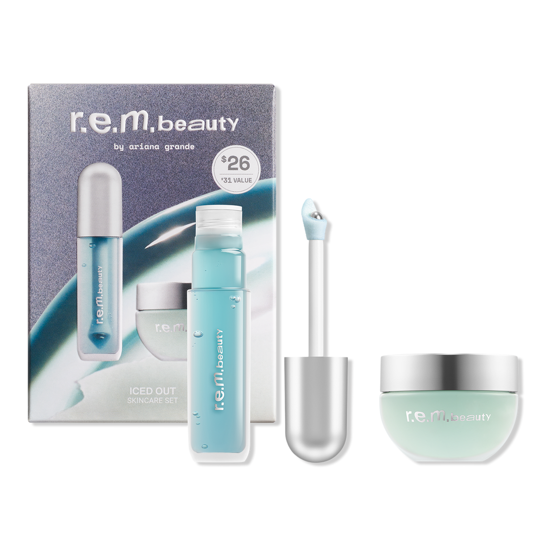 r.e.m. beauty essential drip lip oil drenches lips in a sheer wash of mega glossy, ultra-hydrating shine with a unique scent paired with our Full Night's Sleep Cooling Blurring Undereye Balm that energizes the eye area & helps improve the look of fine lines and reduce the look of dark circles.