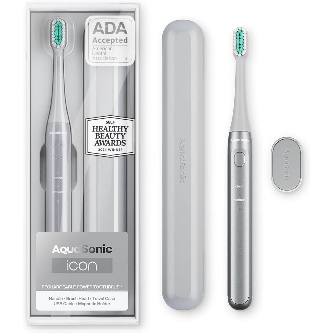 Upgrade your brushing routine with the Aquasonic Icon. This sleek, rechargeable electric toothbrush uses advanced micro-vibration technology to provide a deeper, more thorough clean every time you brush. With its convenient built-in timer, you can easily ensure a full, dentist-recommended clean.