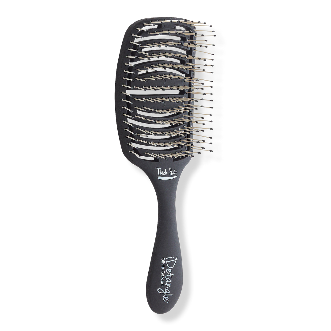 iDetangle Brush from Olivia Garden, an ultra gentle memory-flex double bristle, for styling & smoothing. Also great for extensions, with a dual-curve shape, flexible vented head design and ergonomic handle.