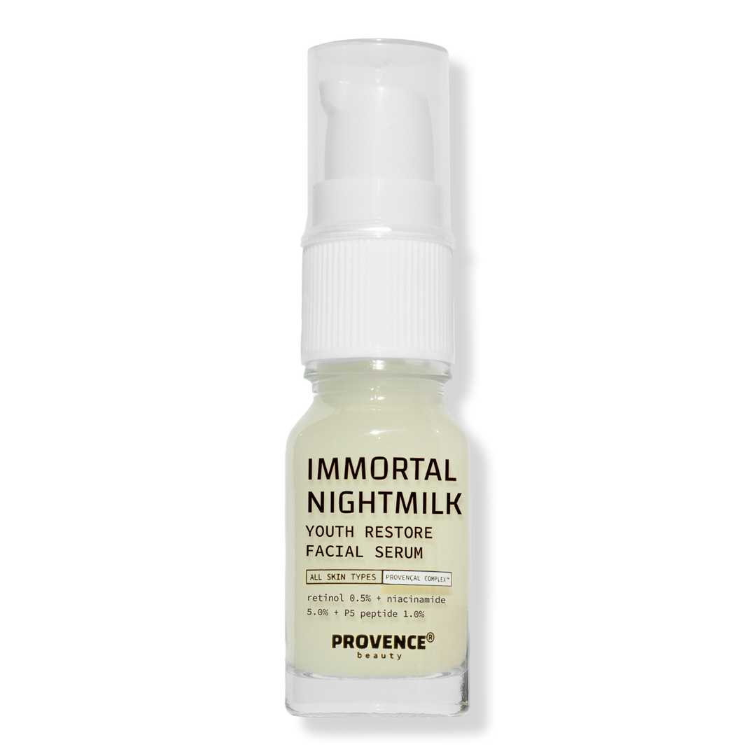 Visibly smooth skin texture, even skin tone, and prevent fine lines and wrinkles with Provence Beauty Immortal Nightmilk Retinol Renewing Serum.