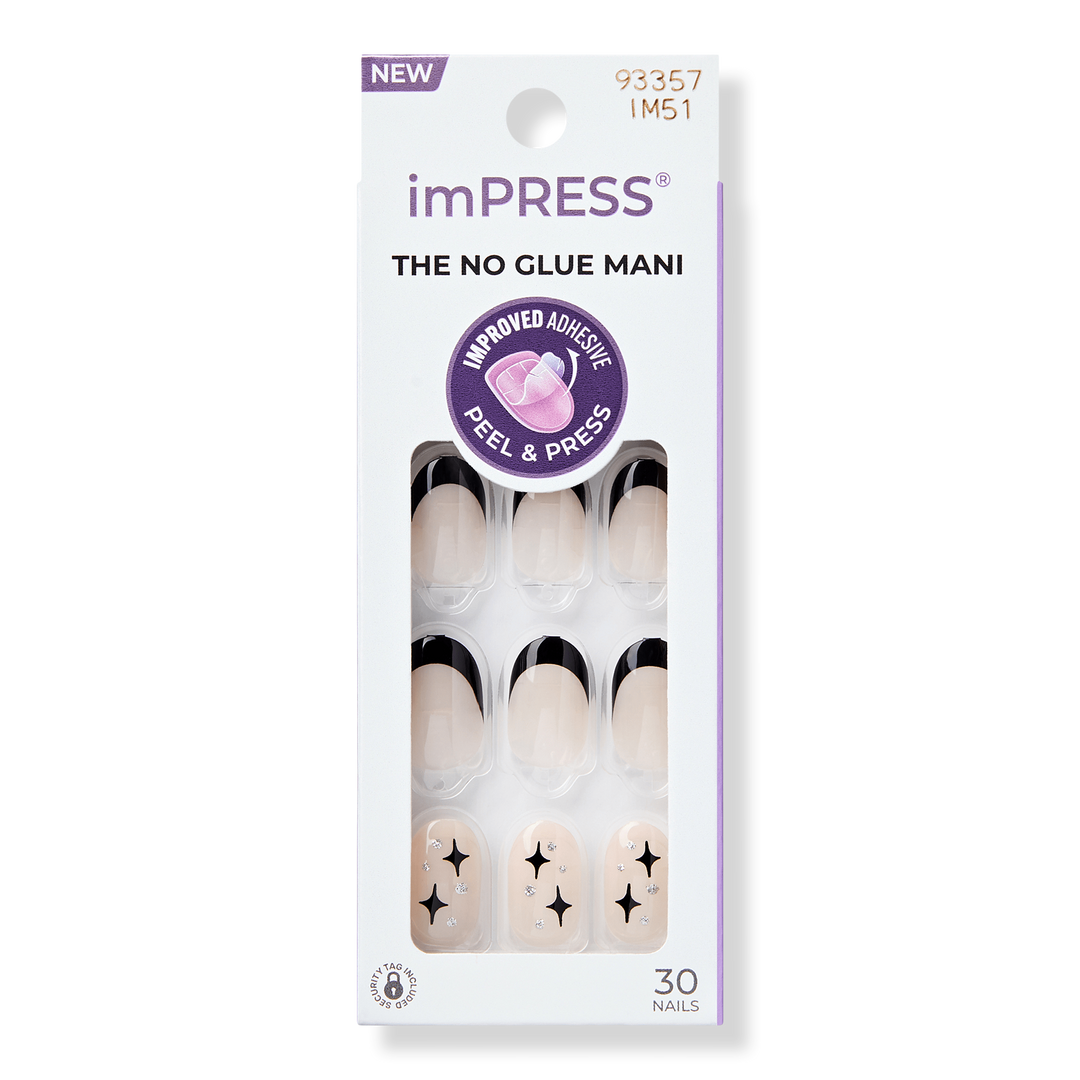 Kiss imPRESS Design Short Press-On Manicure Nails, the EASIEST Mani Ever! Now with new & improved adhesive for a secure hold up to 10 days. From chic solids to matte & glossy finishes, plus a variety of designs, shapes, & sizes, imPRESS NO GLUE Mani offers effortless style for every occasion.