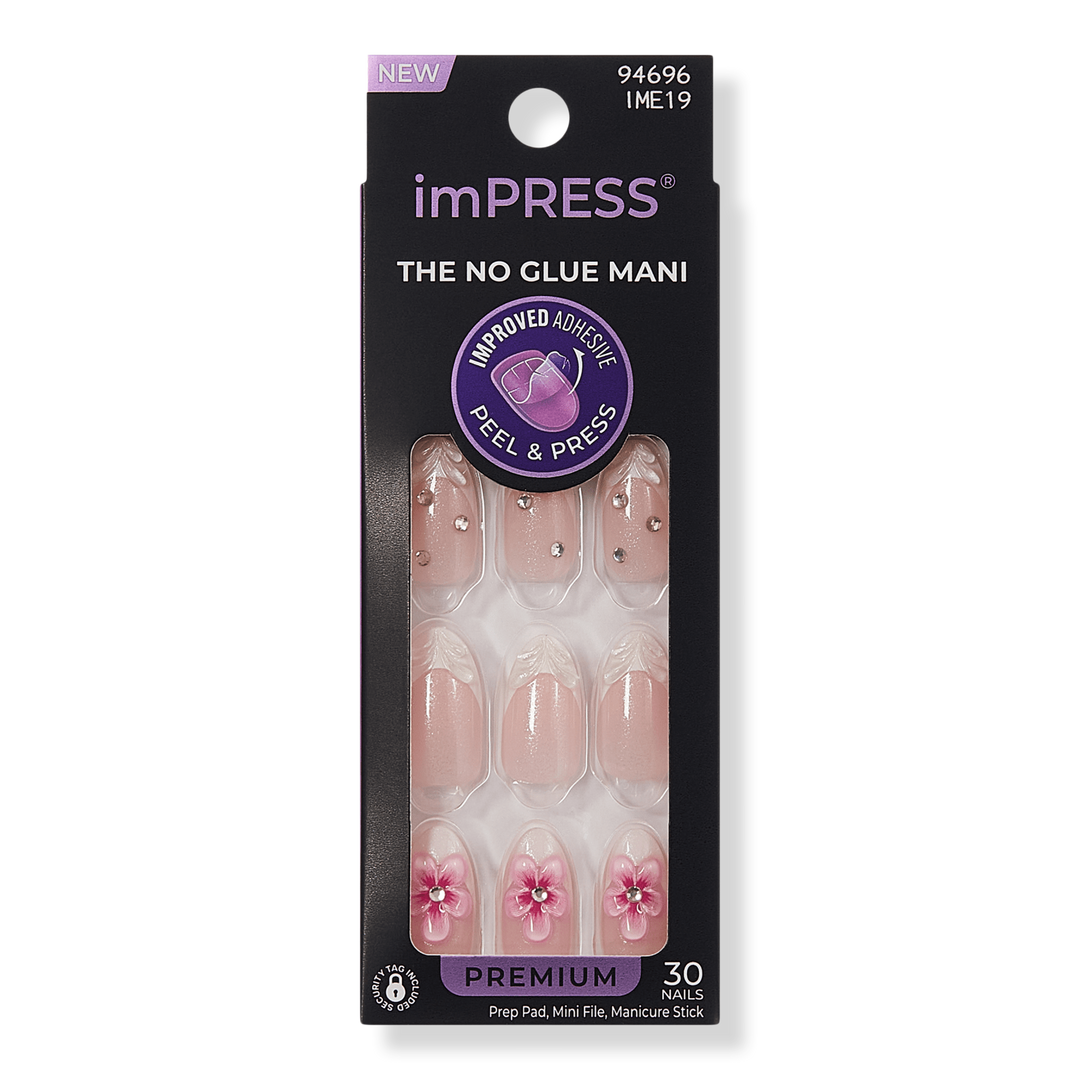 The NO GLUE Premium Mani! The world’s best-selling ready-to-wear false nail brand just took it up a notch. imPRESS Premium features trendy designs created with high tech special effects, previously only available as custom nail art at nail salons.