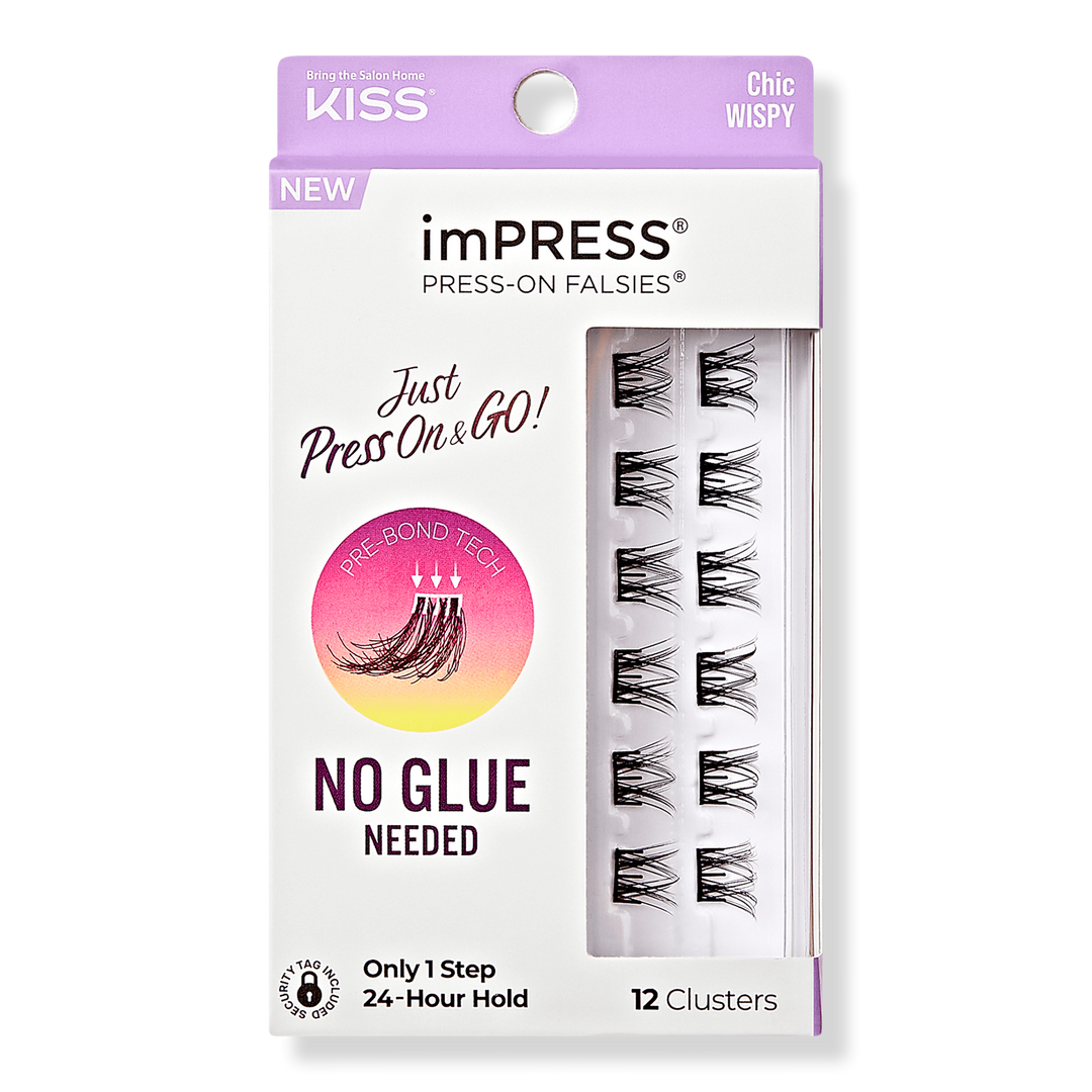 Customize your look with more 'no glue needed' Press On and GO styles by Kiss. Minipacks come in Natural, Voluminous, and Wispy looks. ImPRESS Press-on Falsies with Pre-Bonded Breakthrough Technology require NO GLUE to apply, and are a TRUE game changer.