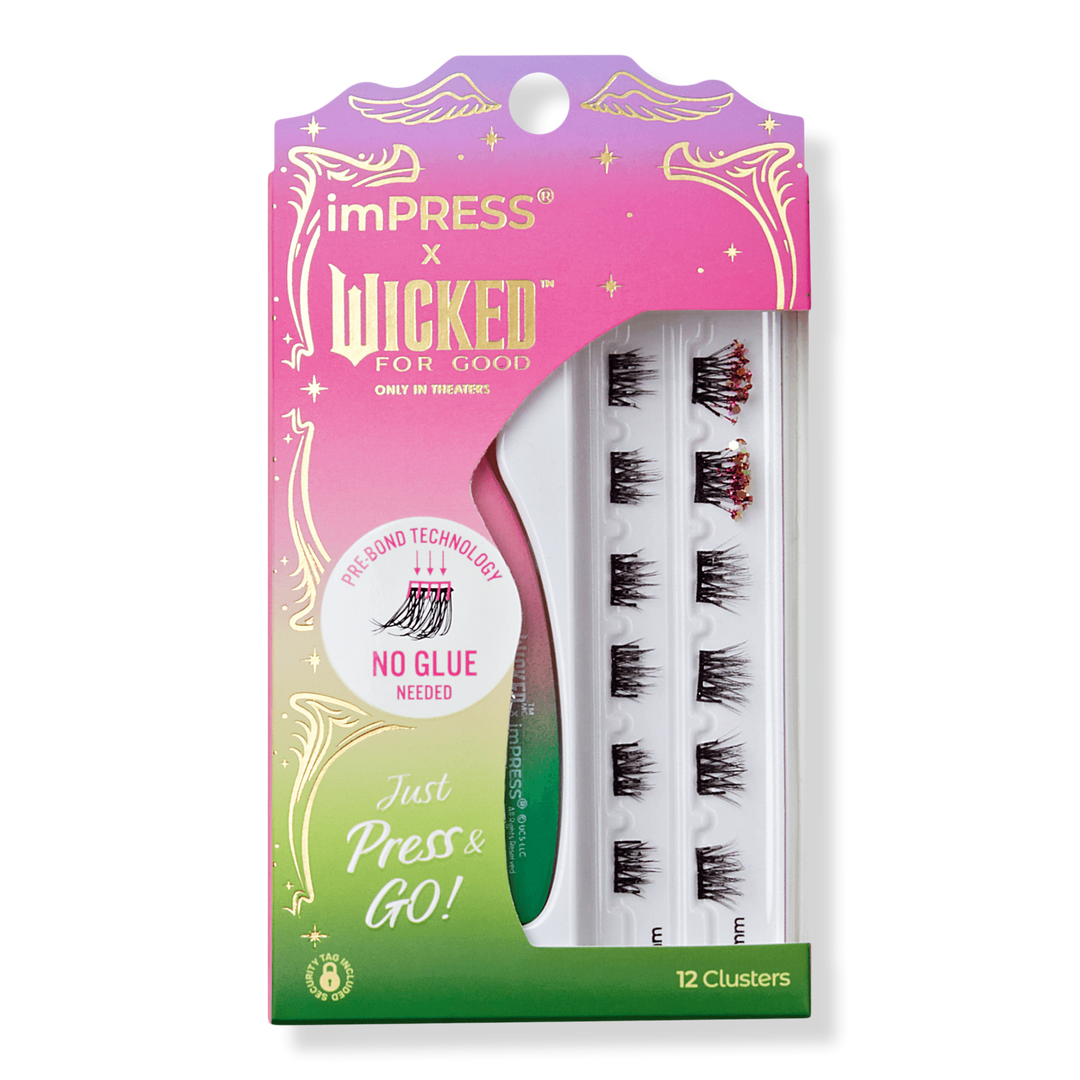 Your future will be unlimited when you wear these glamorously popular press on false eyelashes from Kiss imPRESS X WICKED: FOR GOOD. These Glinda-fied lashes inspired by the movie ‘Wicked: For Good’ go under your natural lashes but stay on magically with no glue. Lash in a flash with WICKED!