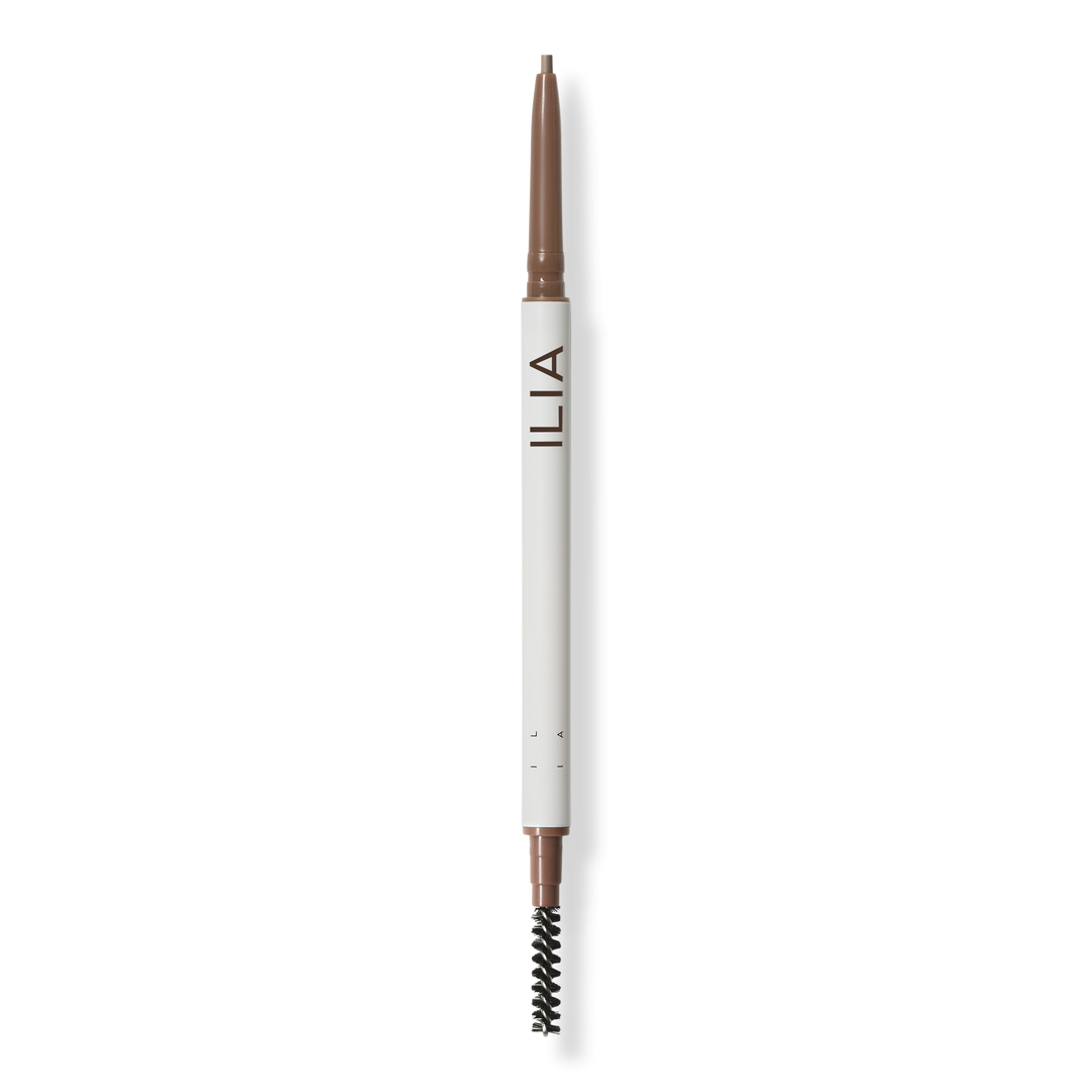 ILIA In Full Micro-Tip Brow Pencil defines brows with thin hairlike strokes. A built-in spoolie blends soft layerable pigment for natural dimension.