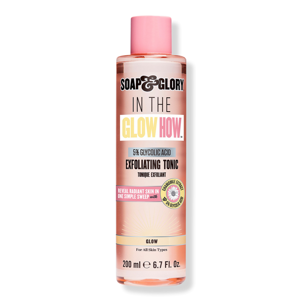 Get ready for a radiance reveal with Soap & Glory's In The Glow How 5% Glycolic Acid Exfoliating Tonic, a skin slougher that gently exfoliates and removes impurities for super-smooth, simply spectacular skin. It deeply cleanses pores, while hydrating, refreshing & helping balance your complexion.