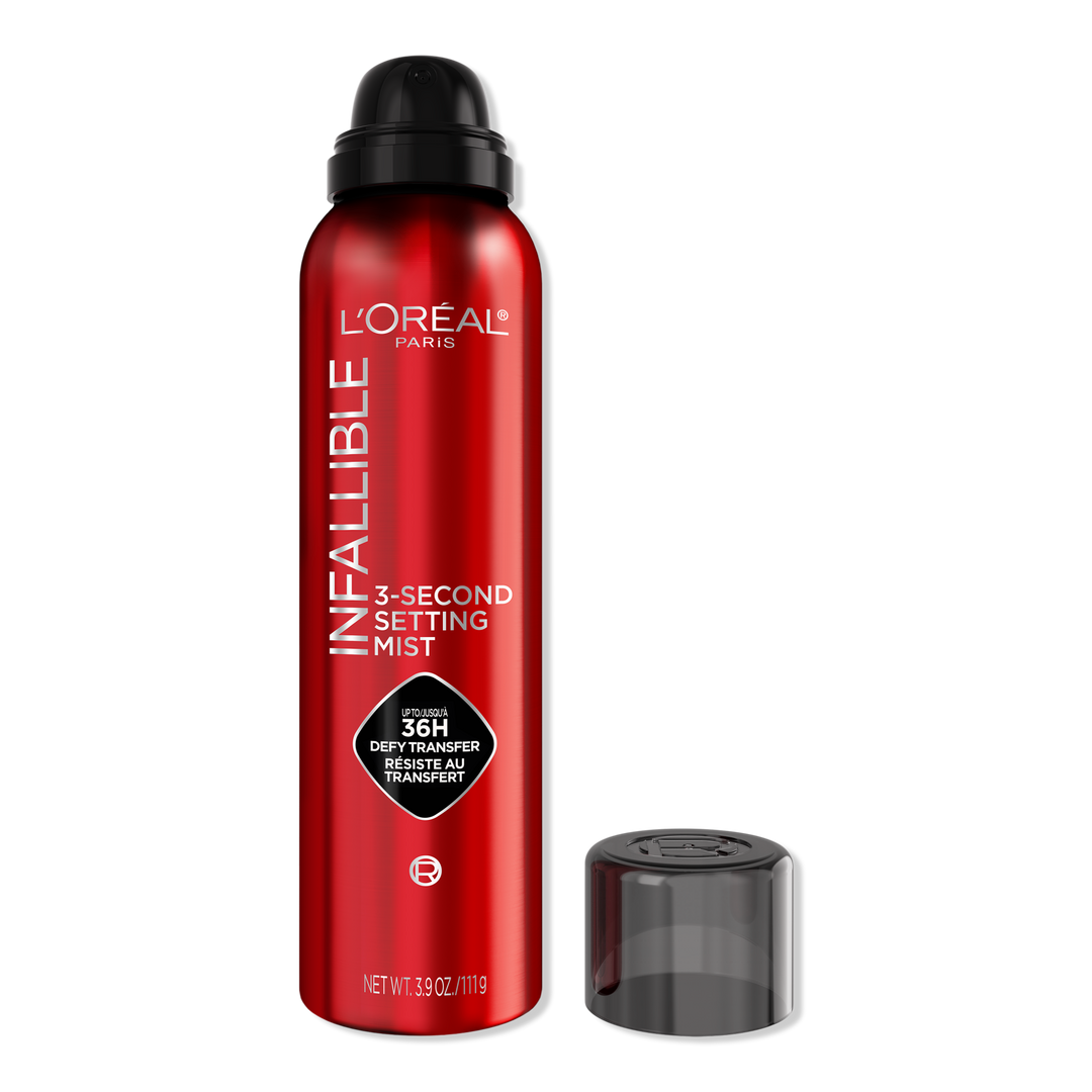 L'Oreal's Infallible 3-Second Setting Mist Spray gives up to 36H wear in just one spray. The professional-inspired aerosol format instantly dries. This setting spray offers transfer and sweat-resistant wear, and feels lightweight.