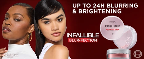 L'Oreal's Infallible Blur-Fection Longwear Loose Setting Powder blurs, brightens, and sets makeup for all-day wear. Perfect for highlighting and a brighter complexion.