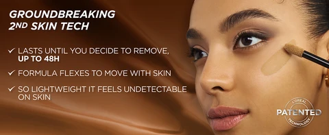 - L'Oréal's patented formula flexes to move with your skin. It is so lightweight it feels undetectable on skin while lasting until you decide to remove.