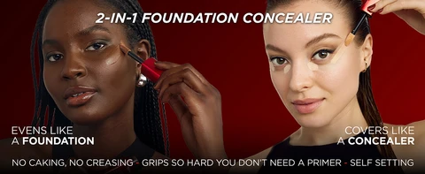 L'Oréal Infallible Skin Ink 2-in-1 Foundation Concealer has up to 48H wear yet is light as ink. Transfer-resistant, waterproof, sweat proof, and humidity proof.