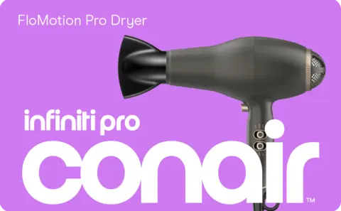 INFINITI PRO CONAIR FloMotion Pro Dryer, Luxe Series delivers full power for thick hair or a gentler flow for delicate styles.