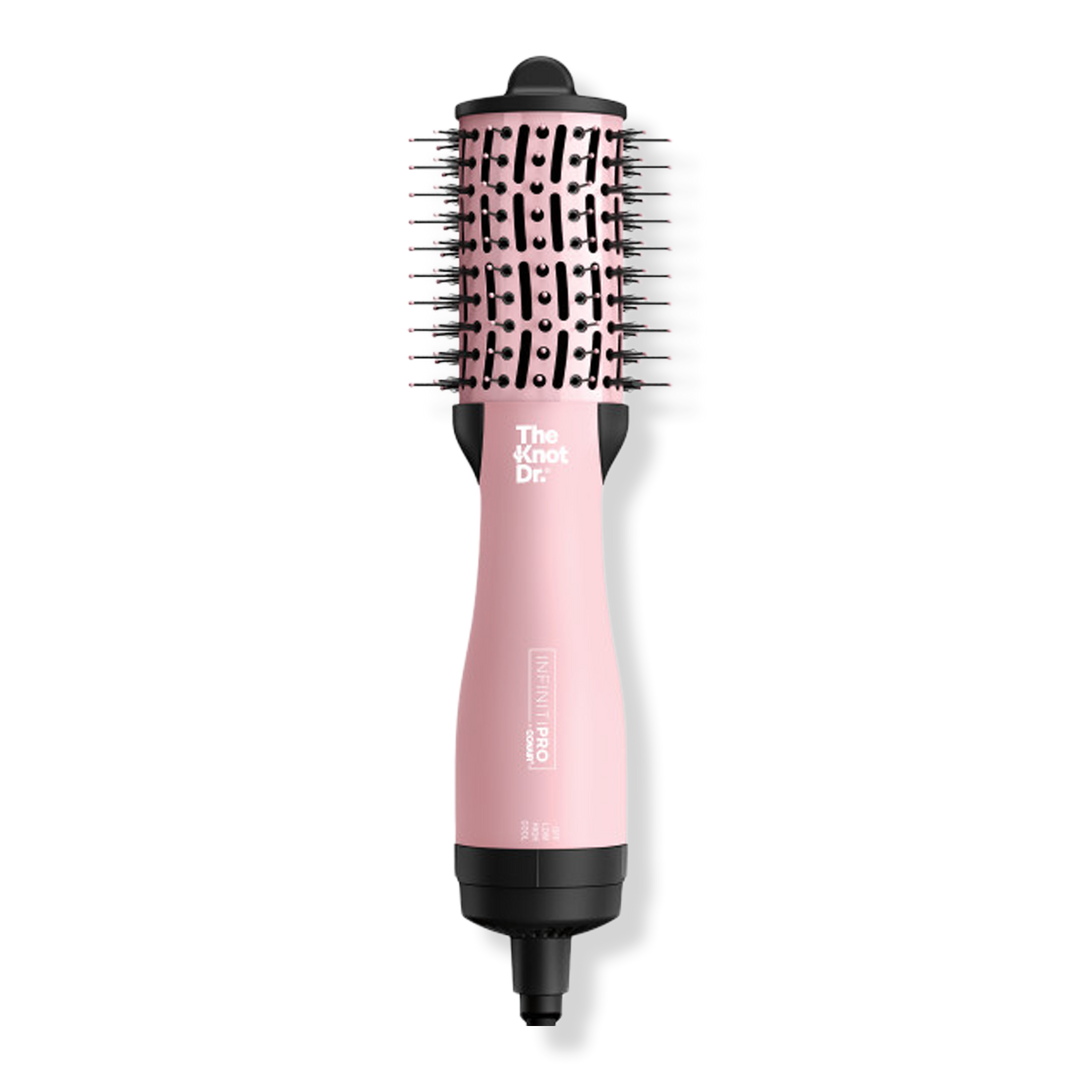 InfinitiPRO By Conair The Knot Dr. Detangling All-in-One Compact Oval Mini Hot Air Brush. Your blowout bestie for salon blowouts at home and on the go! Dry & style in one step and give your hair a quick, painless knotectomy with the compact styling essential that offers maximum detangling power.