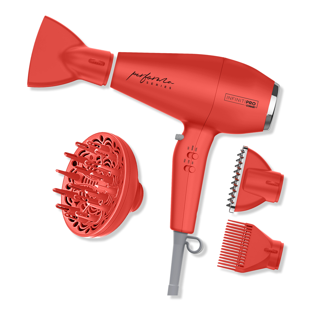 Create infinite styles with the INFINITI PRO CONAIR Ionic Ceramic Dryer. Professional performance, 4 attachments, and 3 heat/2 speed settings.