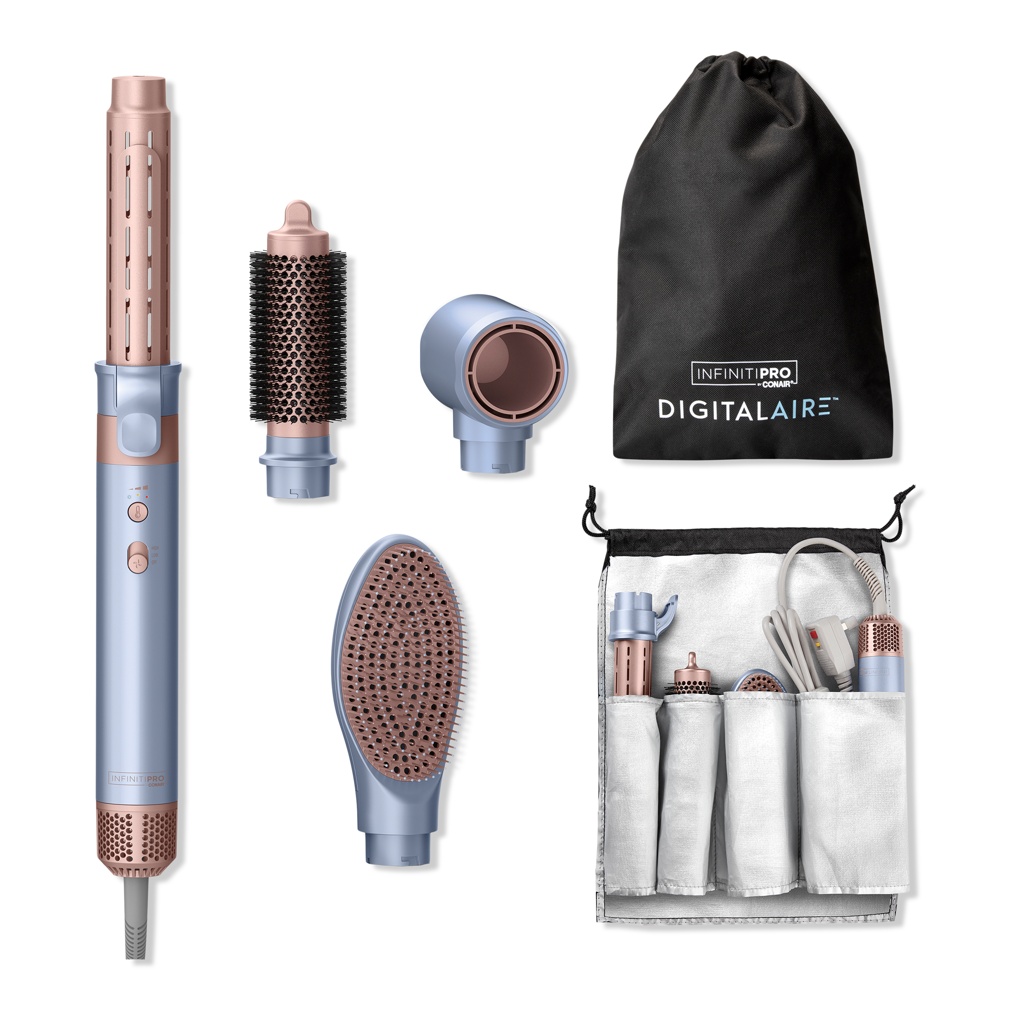 Style as you dry with the powerful InfinitiPRO by Conair DigitalAIRE Styling System. With ceramic technology and 4 different attachments that smooth, curl, dry, and add volume, heat is evenly distributed for frizz- and damage-free hair that shines.