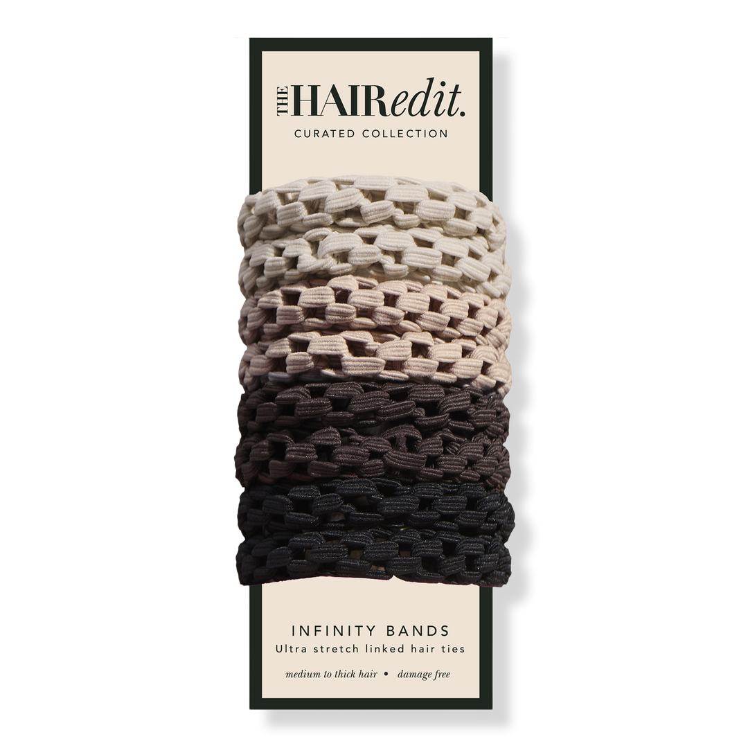 Chic and functional, The Hair Edit Infinity Bands Hair Ties Set have a linked chain design that creates perfect tension and hold for medium to thick hair.