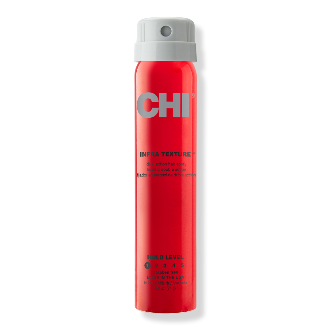 CHI Infra Texture Dual Action Hair Spray is a fast-drying hairspray giving shine, lift, movement, texture and control with no build or flakes. Great as a working or finishing spray.