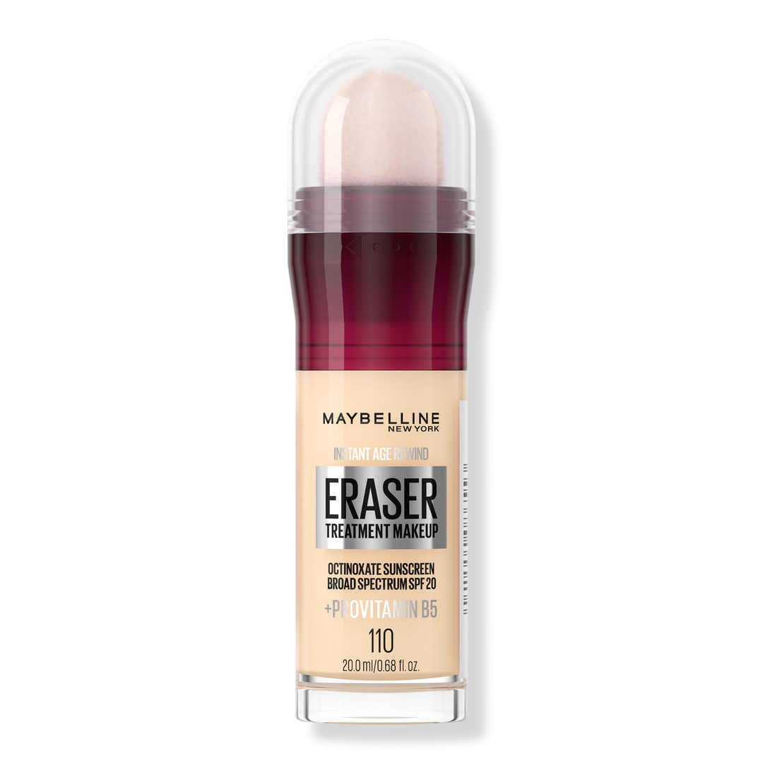 Maybelline New York's Instant Age Rewind Eraser Treatment Foundation with SPF 20 blurs early signs of aging in an instant. The blurring sponge-tip applicator delivers medium coverage. This moisturizing foundation with provitamin B5 goes on smooth for a creaseless, natural finish that lasts.