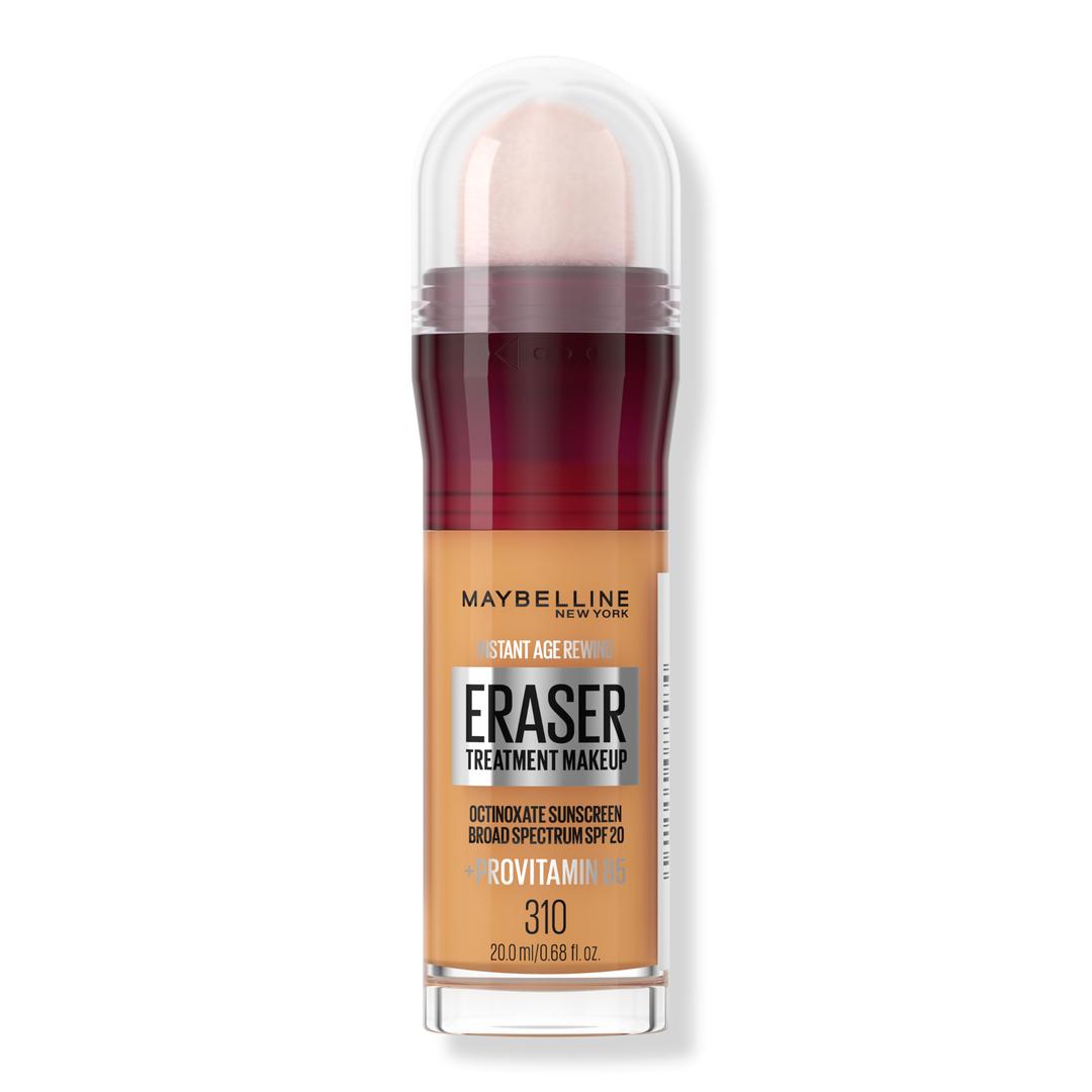 Maybelline New York's Instant Age Rewind Eraser Treatment Foundation with SPF 20 blurs early signs of aging in an instant. The blurring sponge-tip applicator delivers medium coverage. This moisturizing foundation with provitamin B5 goes on smooth for a creaseless, natural finish that lasts.