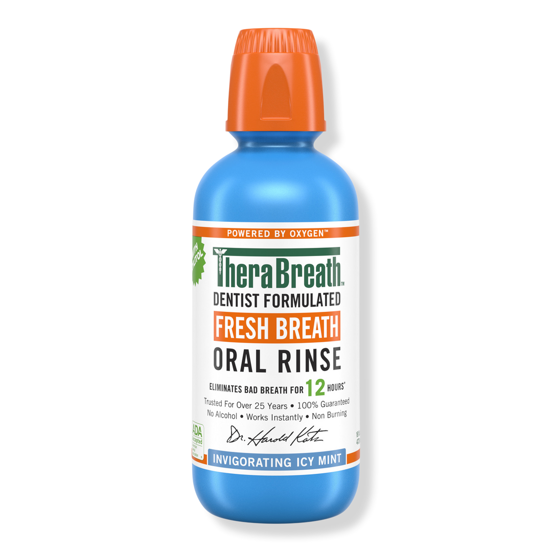 TheraBreath Invigorating Icy Mint Fresh Breath Oral Rinse is a mouthwash clinically proven to fight bad breath for up to 12 hours, with a bold minty flavor.