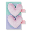 The Izzy Velvet Heart GRWM Barrette Set by Locks & Mane is crafted from soft velvet in a rich pink hue. Each barrette features a heart-shaped design and secures your hair in place without leaving any creases, allowing you to get ready to take on the day!