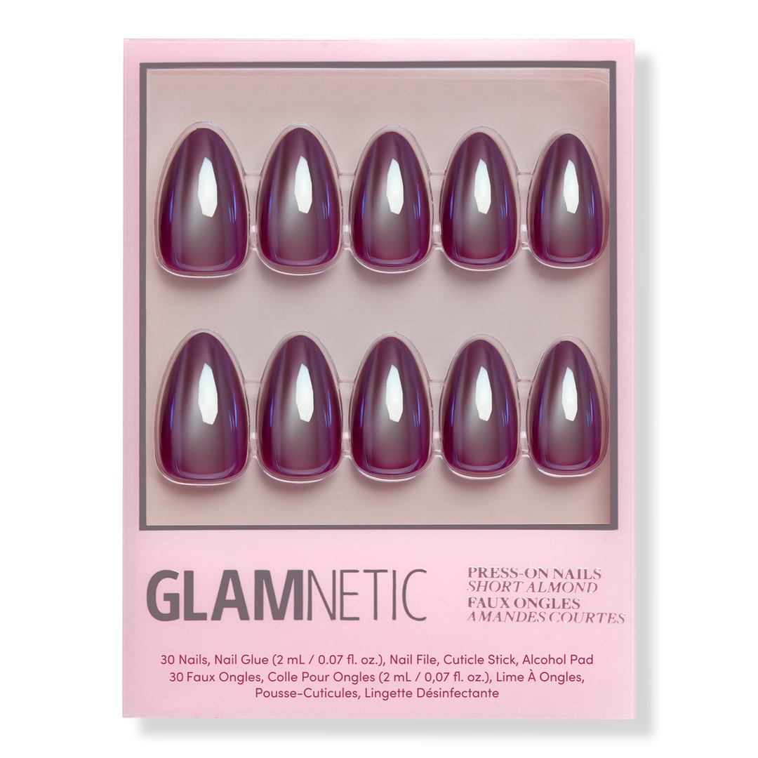 - Align Glamnetic nails with cuticle line and apply at a downward angle. Press down firmly and hold for 10-20 seconds.