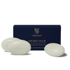A Triple-Milled Plant Based Soap for Bath & Shower, Oval with Logo. A vibrant accord of sparkling bergamot, carnation and thyme with honeyed rose, jasmine, orris drops and basil, with a perfect powdery finish.
