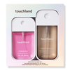 Touchland's Juicy Bloom Limited Edition Body & Hand Mist Essentials Set features the vibrant Lush Tropicale Body & Hair Fragrance Mist and the juicy Wild Watermelon Hydrating Hand Sanitizer Mist, an everyday essentials duo designed to move you and move with you.